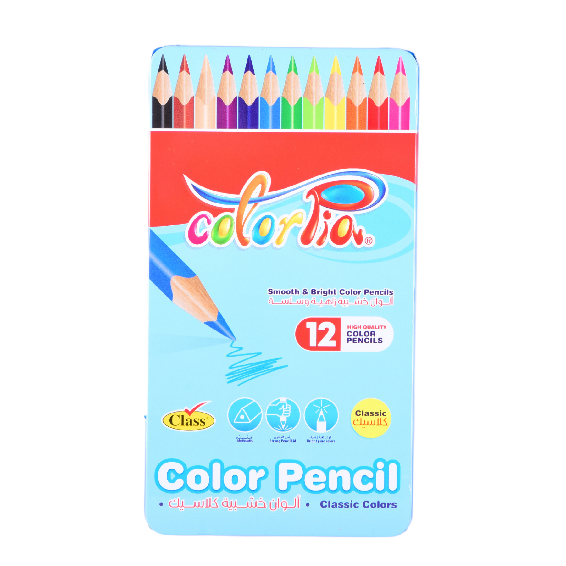 • مجموعة ألوان خشبية كلاسيك 12 قطعة في علبة معدنية :