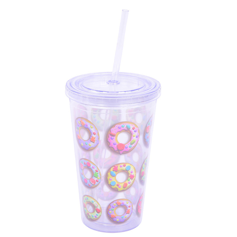 • كوب بلاستيكي مزدوج الجدار بتصميم دونتس لمتانة افضل للاستمتاع بالمشروبات المفضلة اثناء العمل والرحلات.