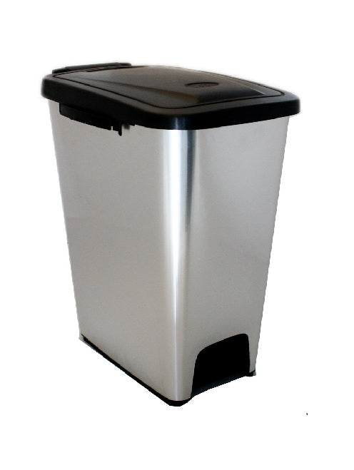 سلة مهملات معدنية بدواسة سعة 16 لترًا - فضي