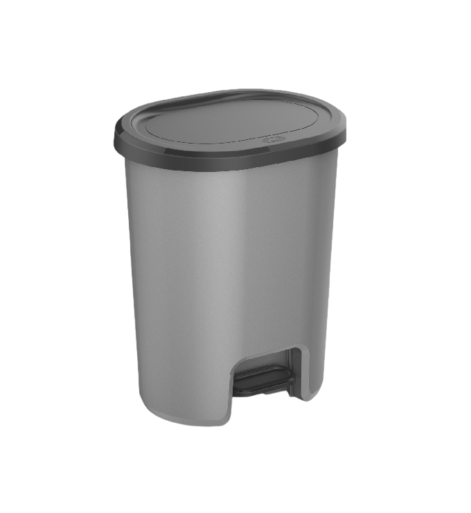سلة مهملات بلاستيكية بدواسة سعة 45 لترًا - رمادي