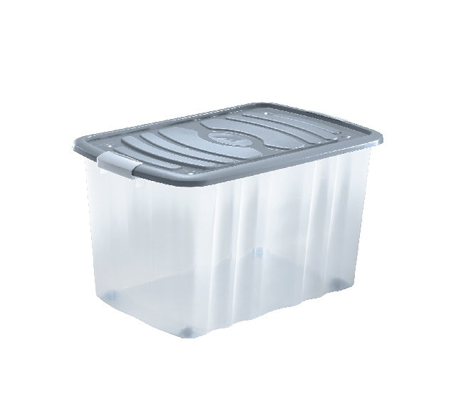 علبة تخزين مع غطاء قفل وعجلات 65 لترًا - شفاف